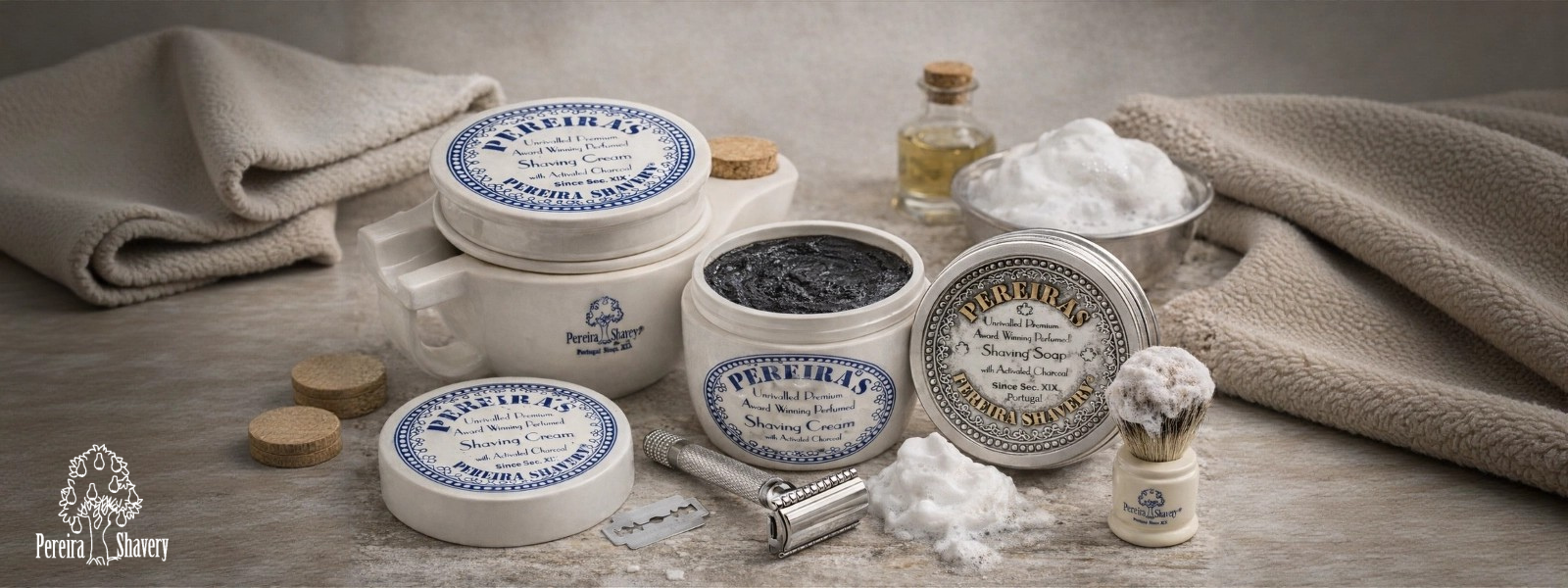 Jabón de Afeitar de Carbón Activo Pereira Shavery 130g. Jabón de afeitar a base de carbón activo. Gracias a su fórmula única proporciona un afeitado suave y mantiene la piel muy saludable, ya que elimina toxinas, combate el acné y exfolia la piel. Además, contiene aceites naturales, por lo que asegura una espuma espesa y suave y una hidratación completa tanto del vello como de la piel.